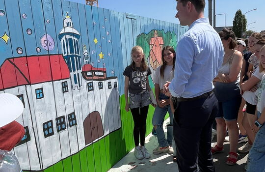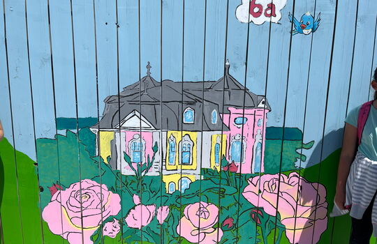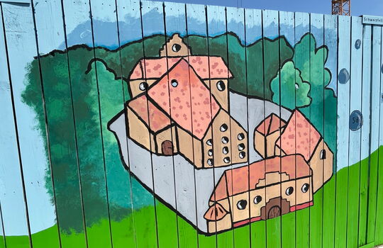 In der Jenaer Straße in Eisenberg entsteht derzeit das neue Hauptgebäude des Landratsamtes des Saale-Holzland-Kreises. Der dortige 120 m lange Bauzaun wurde von insgeamt 80 Schülerinnen und Schülern der fünften und sechsten Klassen künstlerisch gestaltet. Ideengeber war der Bauleiter des Projekts, dessen Tochter das hiesige Gymnasium besucht.