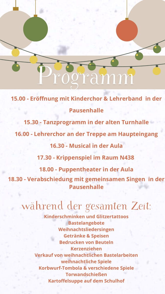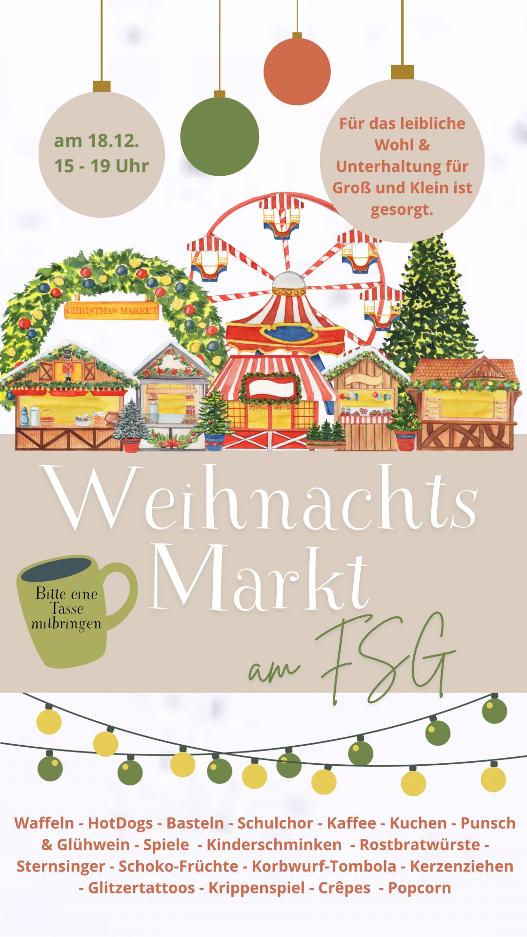 am 18.12. findet unser Weihnachtsmarkt statt, auf den wir uns schon sehr freuen. An diesem Tag öffnet die Schule ihre Türen und zeigt sich mit vielen liebevoll gestalteten Räumlichkeiten.